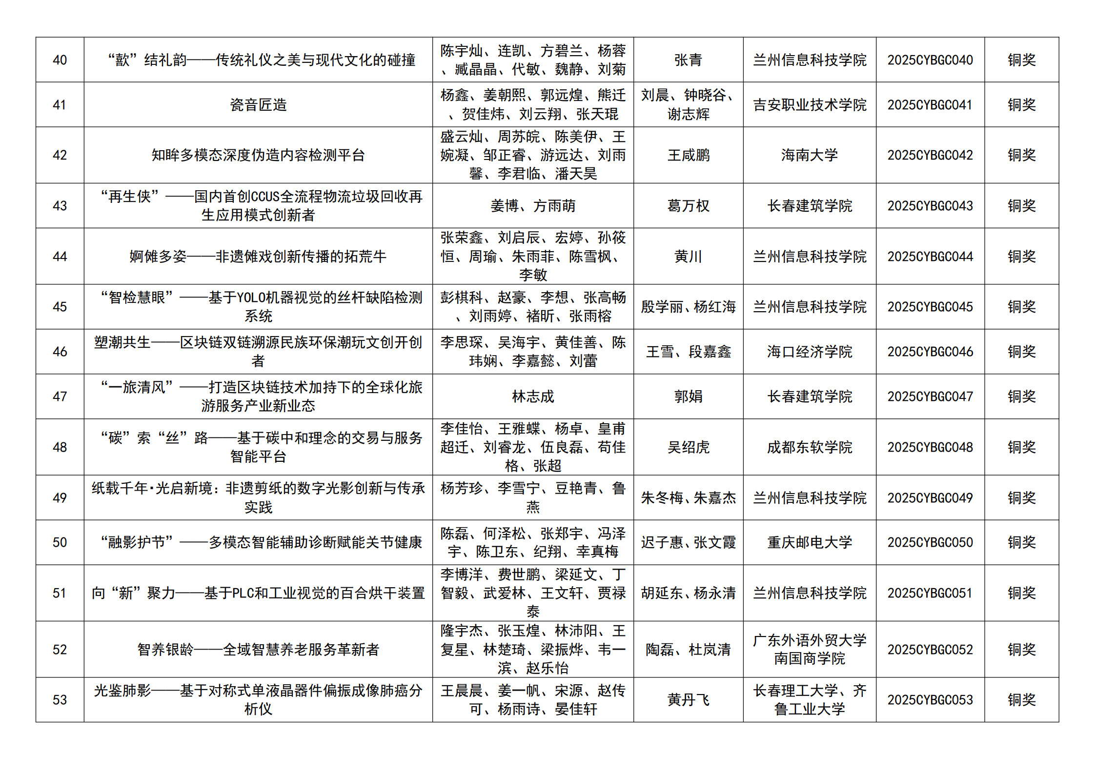 2025第四届“创祎杯”全国大学生创新创业大赛全国总决 赛已圆满收官。作为聚焦青年创客培育与创新成果市场化转化 的核心赛事,本届大赛汇聚众多脱颖而出的优质项目,覆盖智 慧农业、智能制造、智慧医疗、数字文创等多个前沿赛道,充分展现了当代大学生将移动互联网、人工智能等先进技术与社会民生需求深度结合的创新智慧,以及敢闯敢创的实干精神。